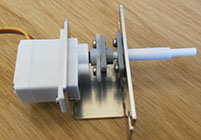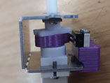 A couple of 3D printed parts hold the 2 tubes - the outer one fitting through the baseboard and the inner one connecting via a "Dog" mechanism to the servo.