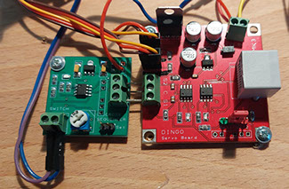 The board is designed to interface with the existing Red Twin Servo Board so that 2 gates can be controlled.