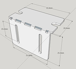 Alternatively it can be combined with part B via 2 M2 screws and washers to form a horizontal mount for use in such items as level crossing gates.